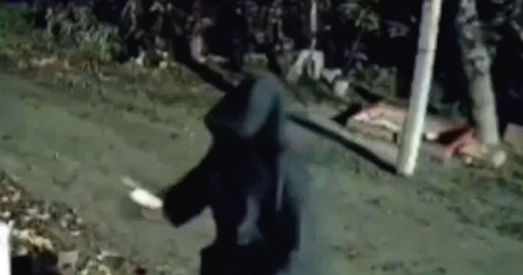 A man clad in black robes was caught on camera performing a satanic ritual outside his ex-girlfriend’s residence. The ritual involved a pentagram drawn in red liquid, candles, and a severed cow’s head. The man placed the cow’s head on the ground, painted a large pentagram in blood-red, and threw Tarot cards at the symbol’s center. He lit candles and created another symbol using red liquid.