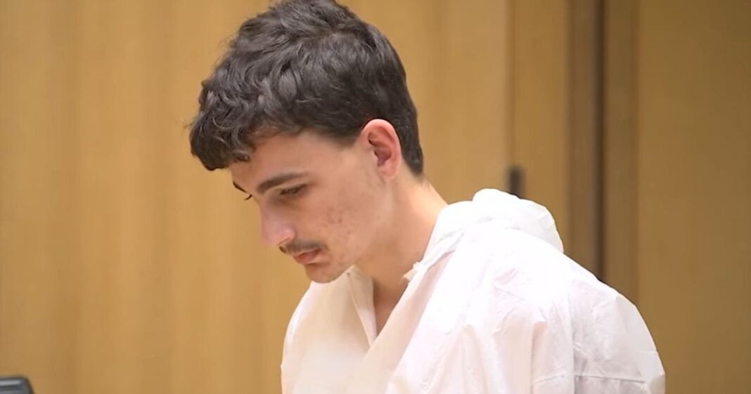 A 20-year-old individual is accused of fatally attacking his mother with a hammer before fleeing into the nearby woods where he uttered a single chilling word.