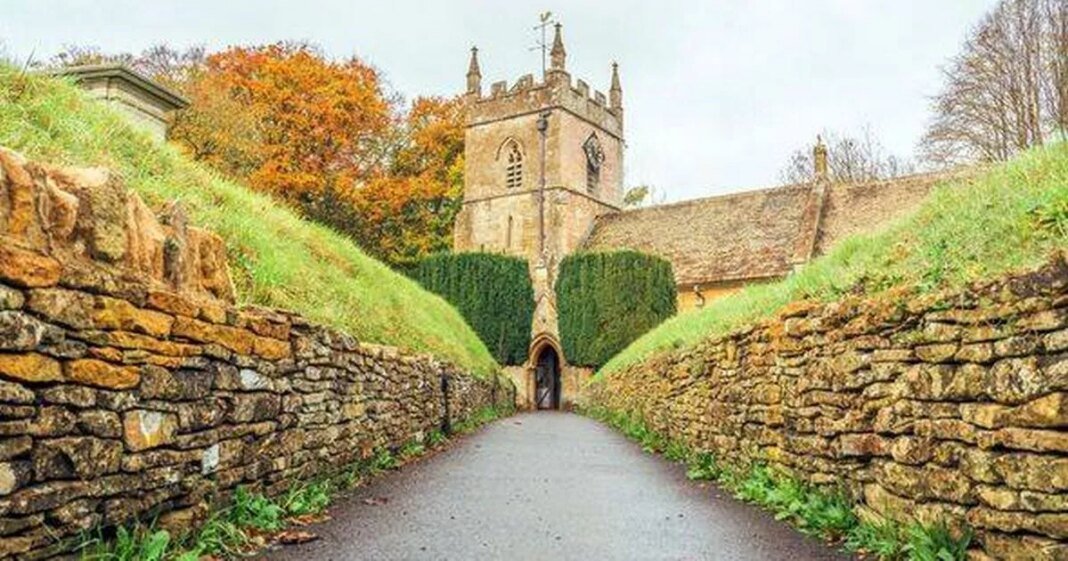 St Peter’s Church in Upper Slaughter, a Norman church with origins dating back to the 12th century, showcases stunning architectural details and colorful stained-glass windows.