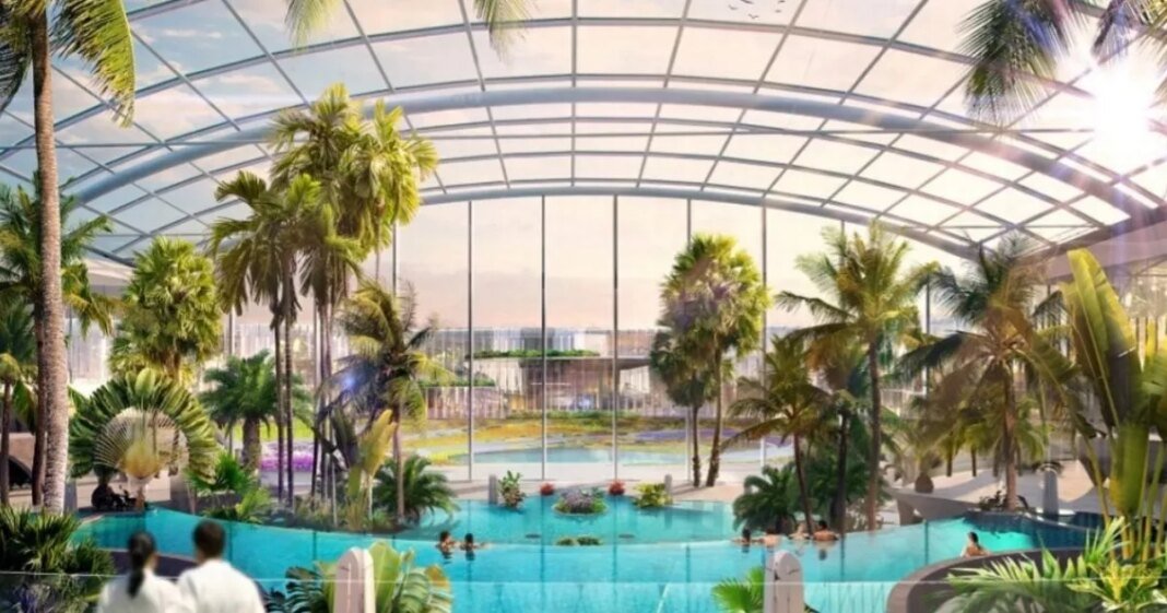 Through various planning stages, the resort’s design has evolved from a single structure with an expansive undulating glass roof to interconnected roofed pavilions. Once operational, the resort will offer 30 water slides, the largest sauna area in the UK, multiple steam rooms, botanical gardens, immersive art displays, and a family-friendly wave pool.