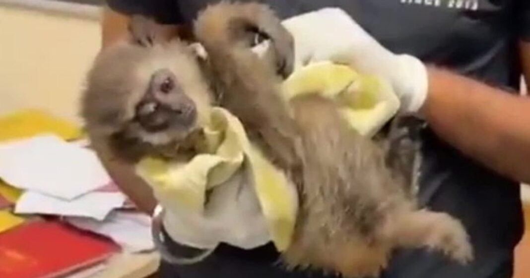 Customs officials at Mumbai’s Chhatrapati Shivaji Maharaj International Airport discovered two rare silvery gibbons hidden in a passenger’s bag on October 30. Video footage from the airport captures officials inspecting one of the infant animals, estimated to be around two and four months old.