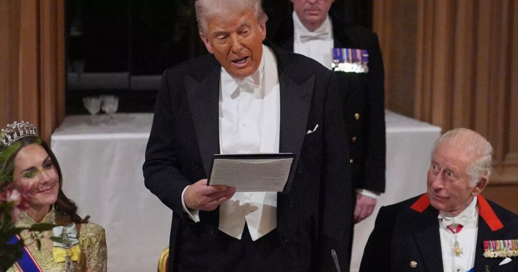 Donald Trump caused a stir by going off-script during a state banquet speech, making political comments in front of the King, breaching protocol. The US President mentioned “free speech” and the “Union Jack,” hinting at UK politics. This happened during a lavish state dinner at Windsor Castle, part of his second state visit to the UK.