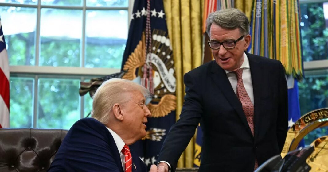 Contrary to Trump’s denial, there is photographic evidence of him shaking hands with Lord Mandelson in the Oval Office in May during the signing of a trade agreement between the US and the UK. Trump complimented Mandelson’s accent at the time and even signed a copy of the deal for the Labour veteran.