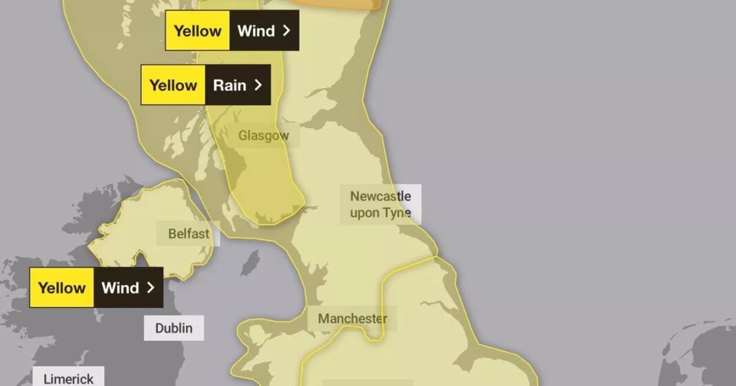 Yellow weather warnings are currently in effect for a significant portion of Scotland and Northern Ireland, with Storm Amy expected to bring strong winds and rainfall across the rest of the UK leading into the weekend.
