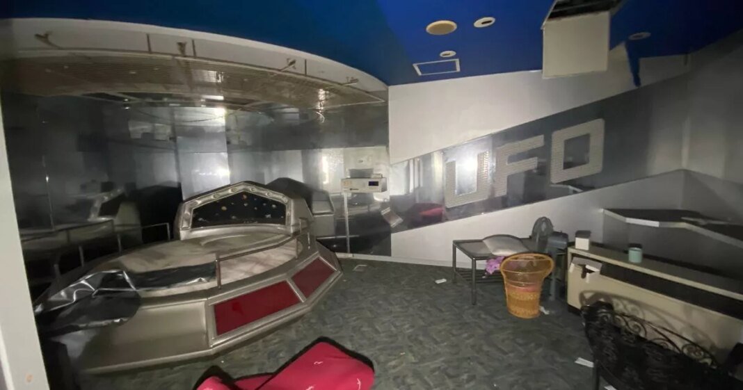 Each room inside the hotel featured a unique theme, offering diverse experiences such as spaceship-style beds, clam-shaped baths, and even a complete boxing ring. Luke, who comes from Bury, Greater Manchester, described the experience as surreal, noting the well-preserved state of the place, including menus still on display for guests to choose from.